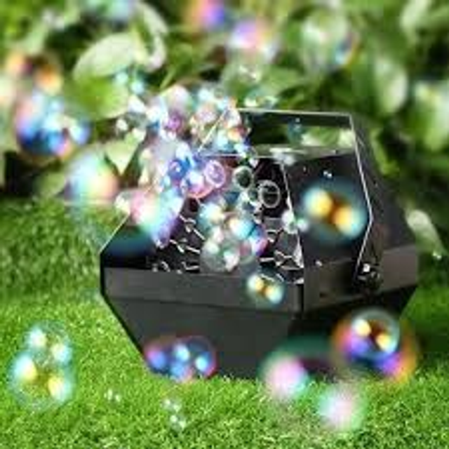 Bubble machine with disco lights and bubble solution.